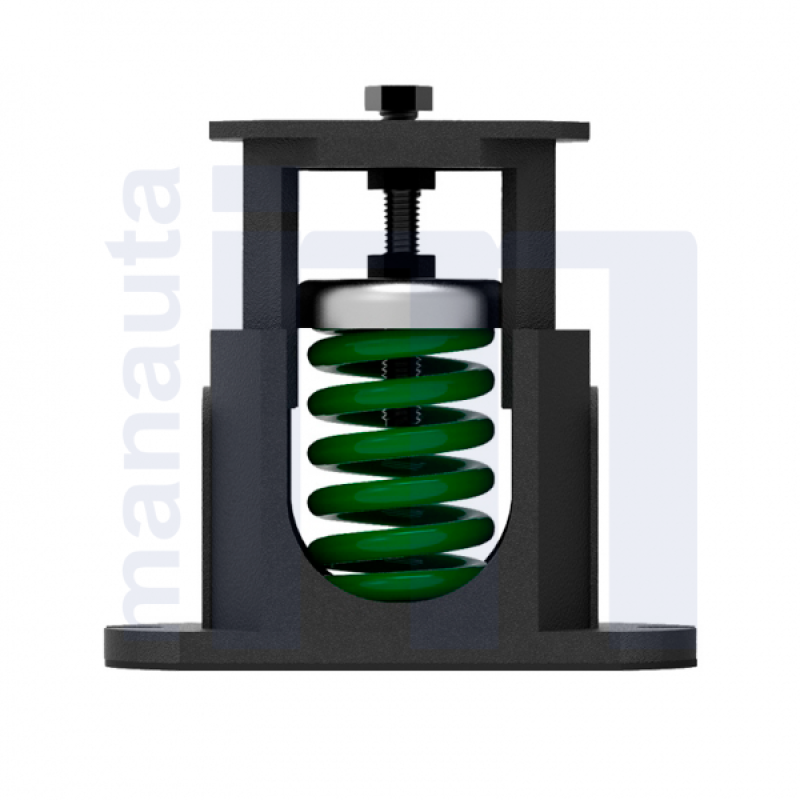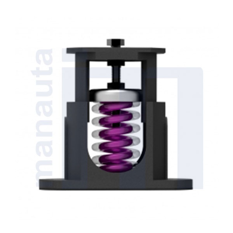 The RSA supports have the advantage of the great deflection of the springs next to the casting shell that functions as an exoskeleton that protects the spring from movements of stops and starts of the equipment or from abnormal vibrations. Its anti-slip rubber base also performs the function of absorbing vibration and noise. To increase the load of these supports can be put a inner spring C99L lilac that gives 130 kg. more cargo with the same deflection. Comply with ASRHAE, book Applications, chap. 47, sec. 47.44, type 4 “Restrained spring isolators”.